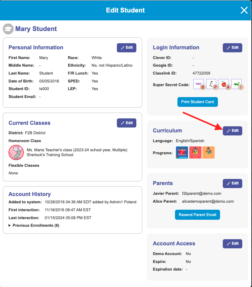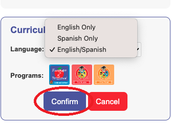 Under Curriculum Settings, click Edit and select the desired language toggle setting for the student.